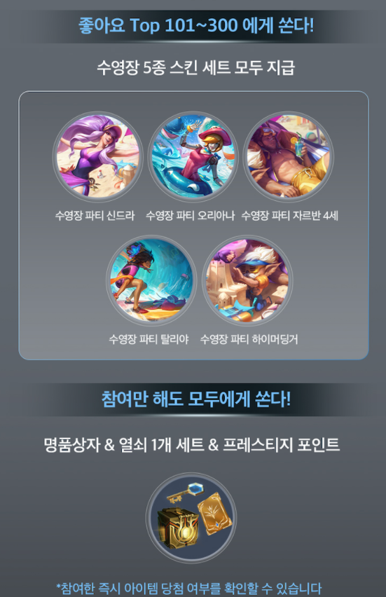 LCK 서머풀파티 이벤트에 당첨되며 신규스킨을